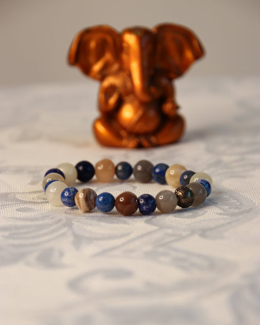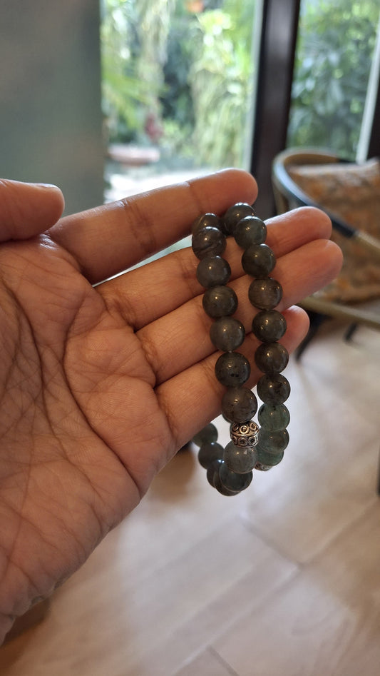 Aquamarine, Yellow Jade & Garnet Bracelet
